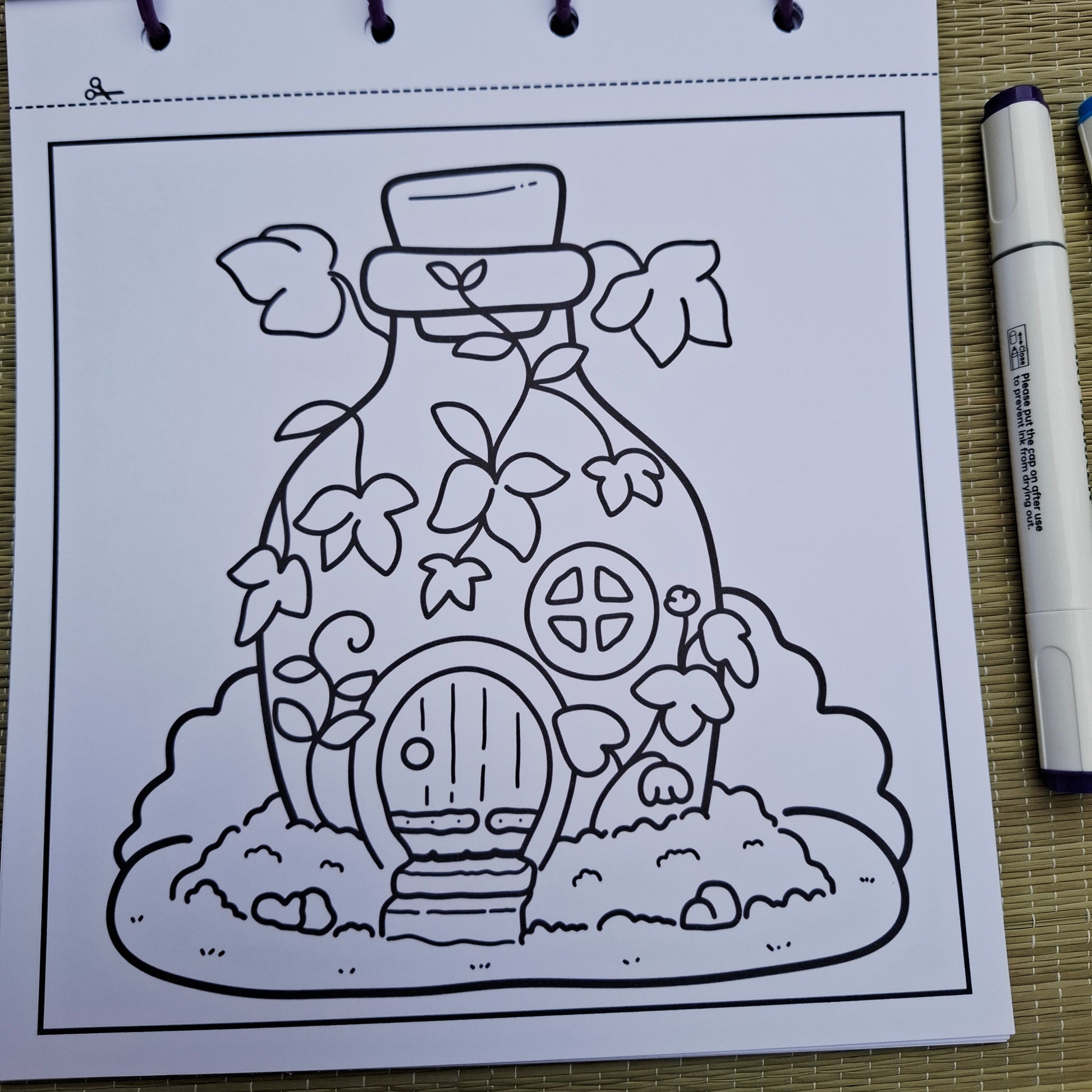 Bring a touch of whimsy to your creativity with the Miniature Garden Fairy Bottle Cottage coloring book. Homemade and ring bound, this charming collection of detailed illustrations invites you into a tiny world of cottages and magical gardens perfect for relaxing moments and imaginative coloring.